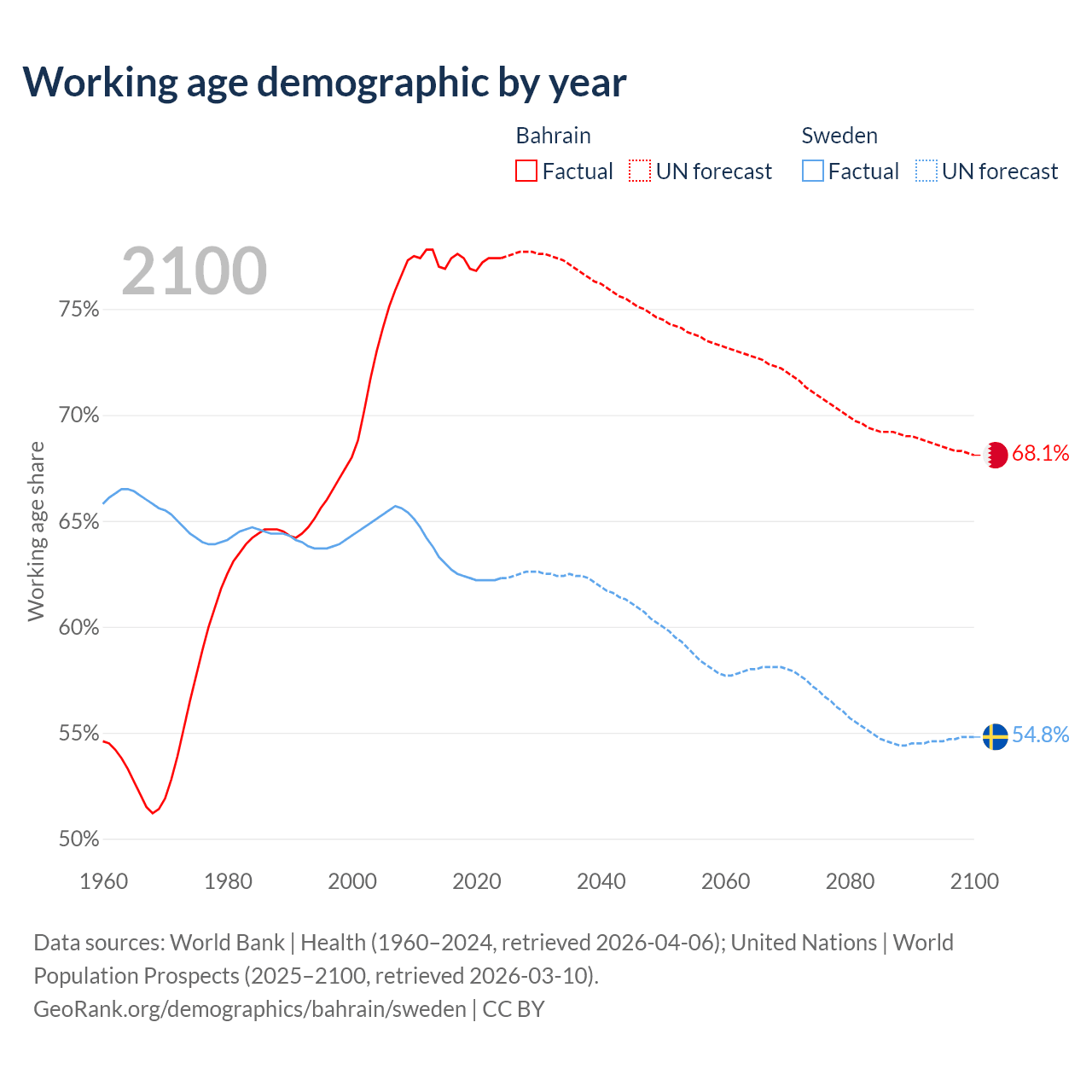 - Bahrain has 1.29M working age adults (aged 15-64) vs 6.65M in Sweden.