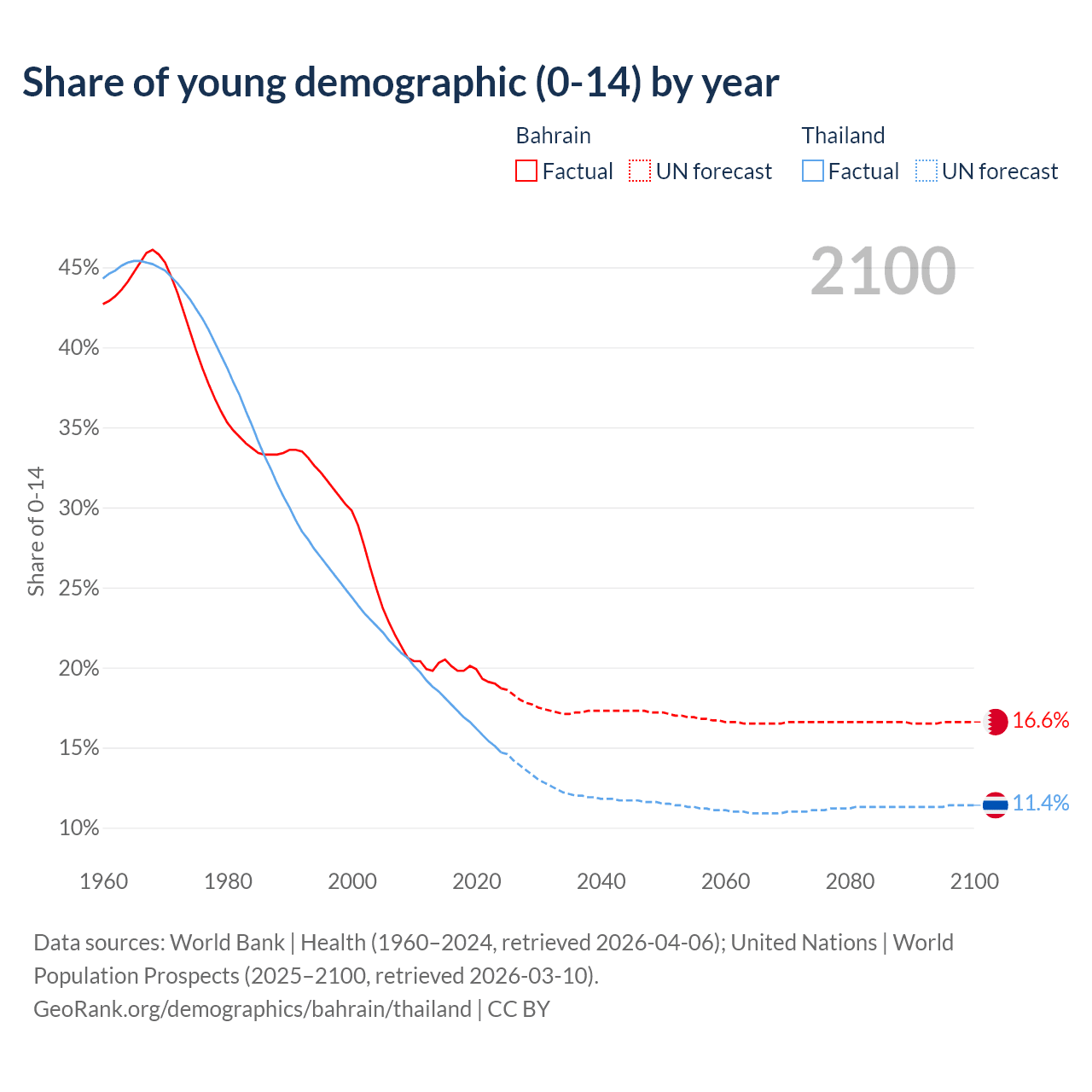 - The total fertility rate is 1.82 in Bahrain compared to 1.21 in Thailand.