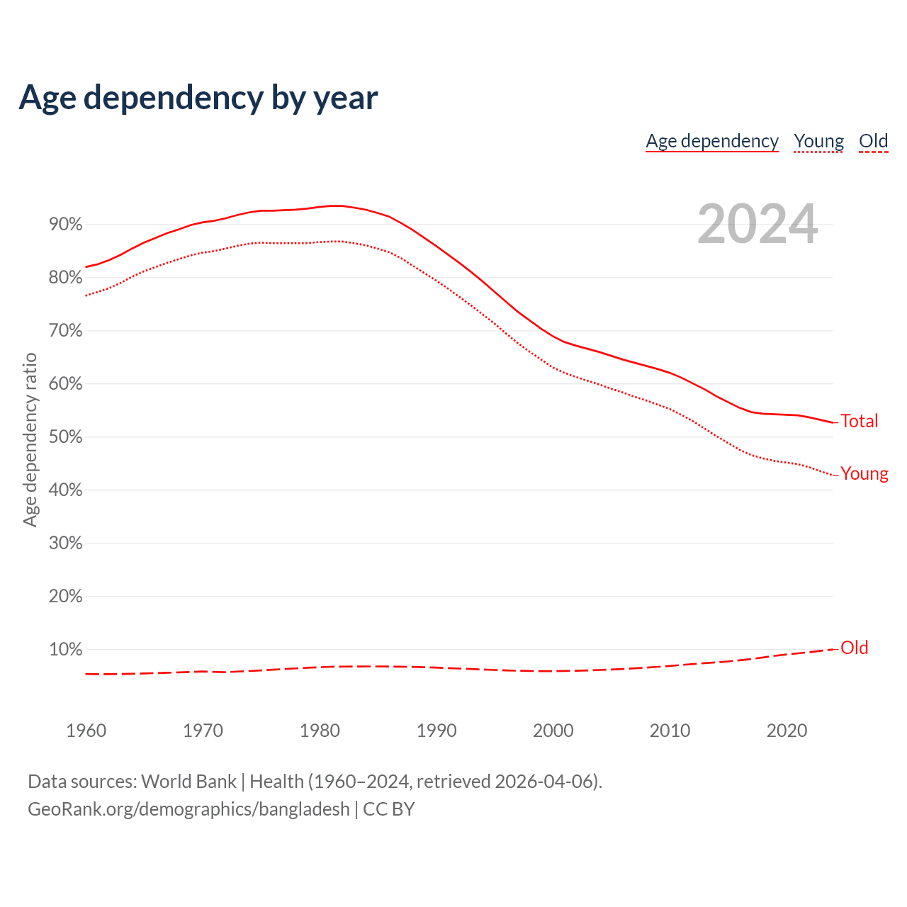 - World Bank | Health (1960–2024, retrieved 2026-04-06)