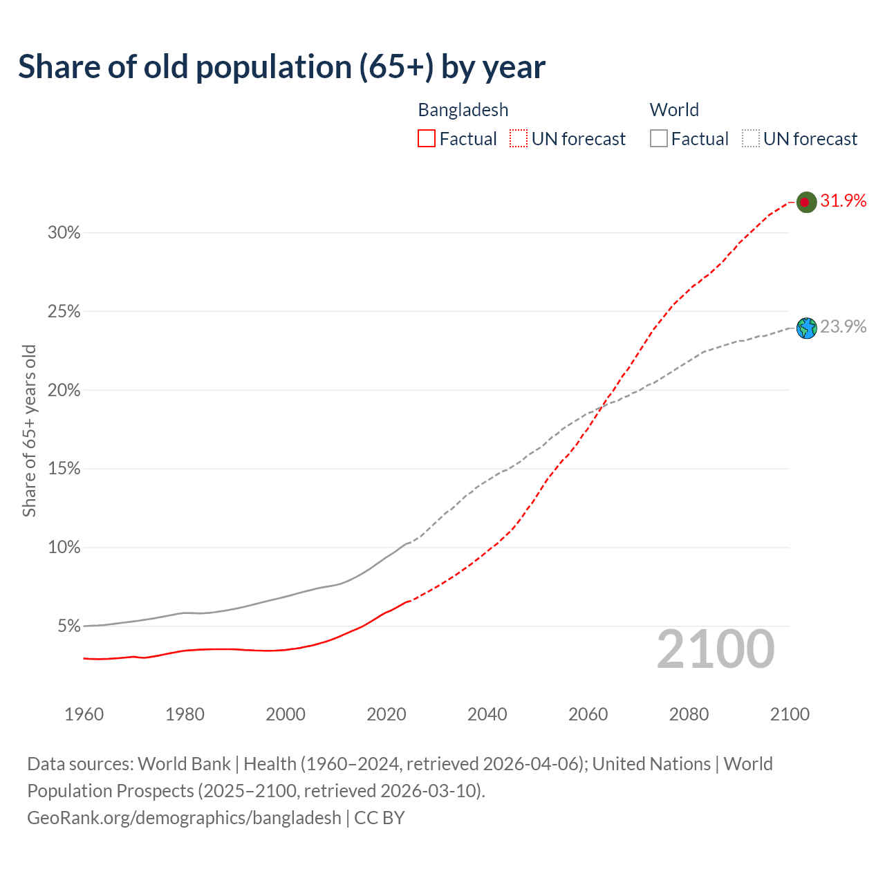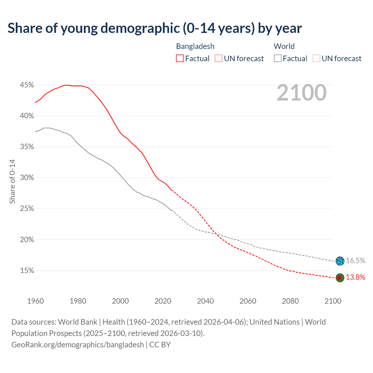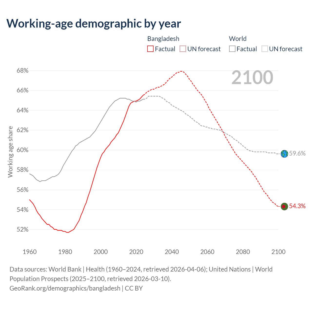 Median age in Bangladesh, 1960–2100