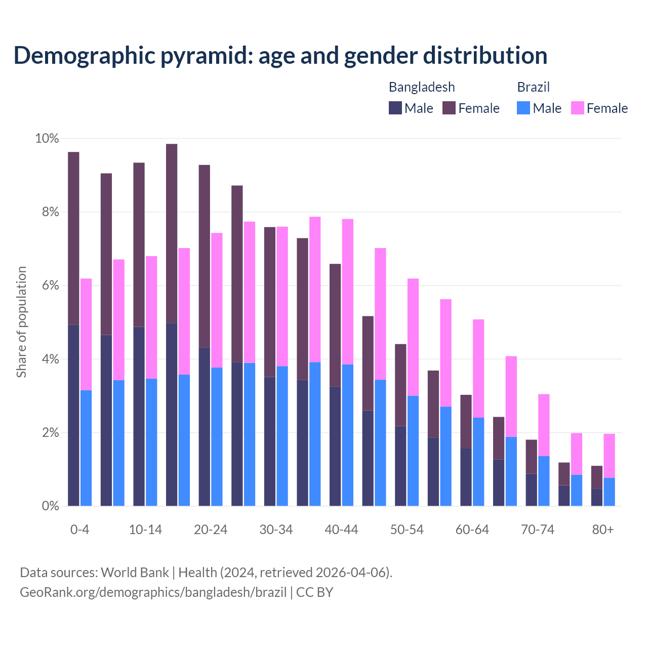 Demographics of Bangladesh compared to Brazil: