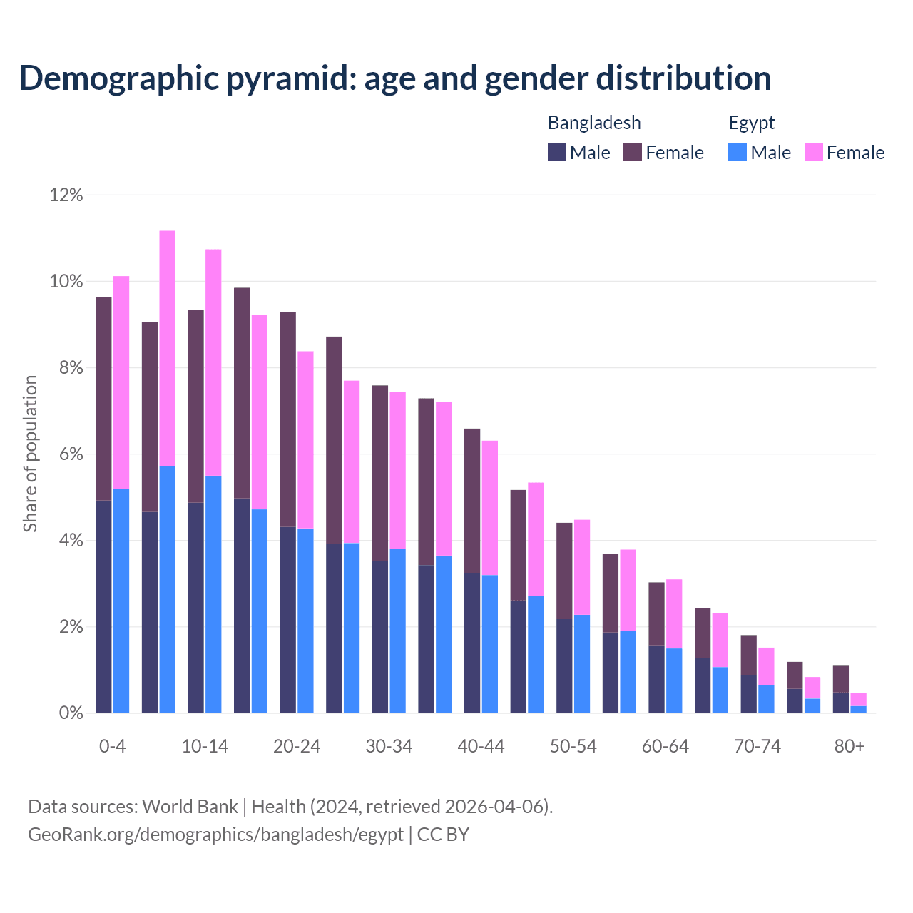 Demographics of Bangladesh compared to Egypt: