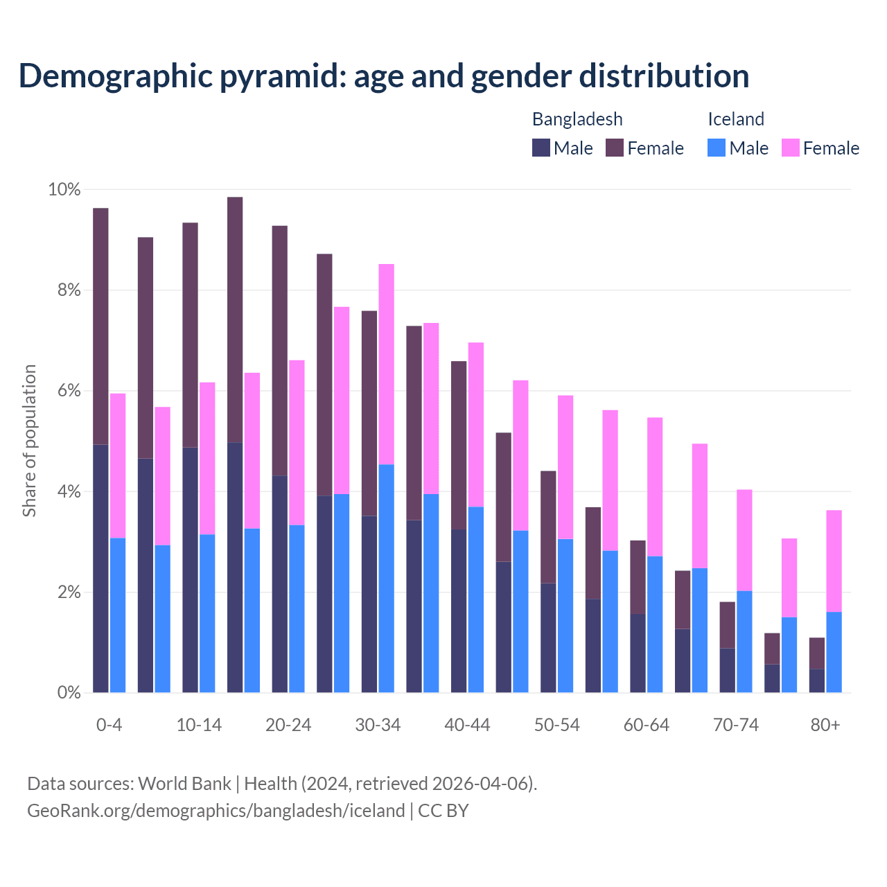 Demographics of Bangladesh compared to Iceland: