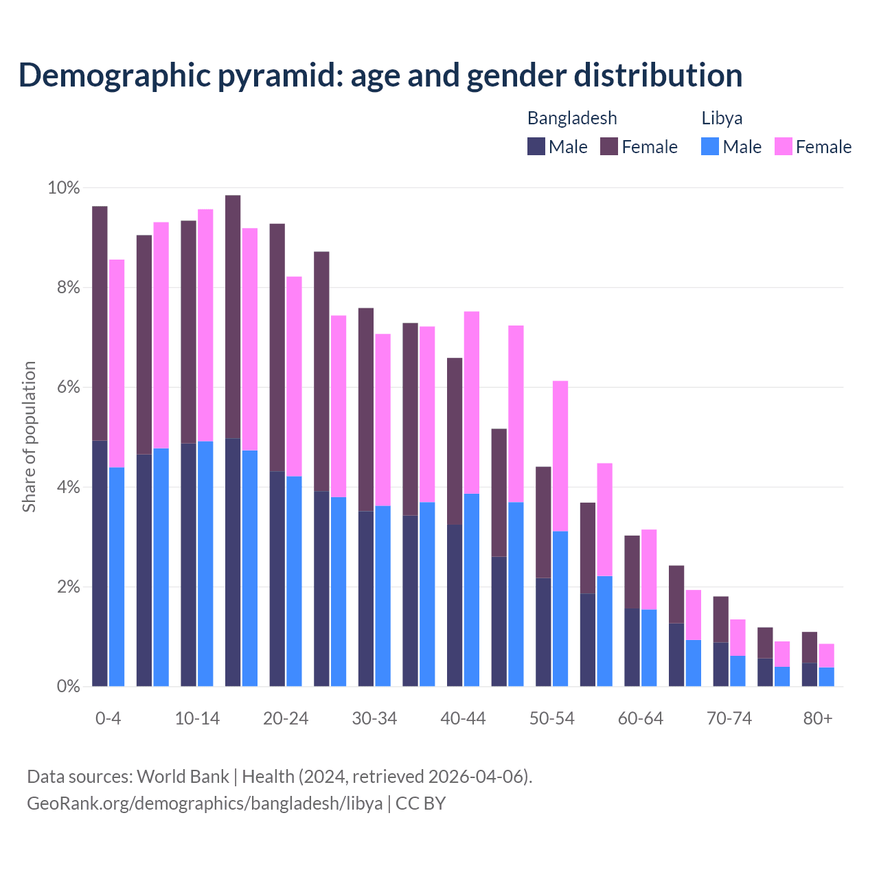 Demographics of Bangladesh compared to Libya: