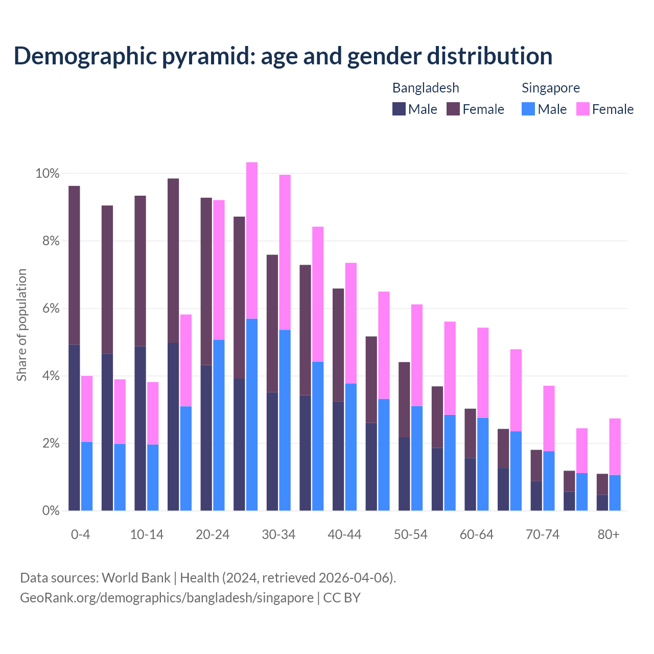 Demographics of Bangladesh compared to Singapore: