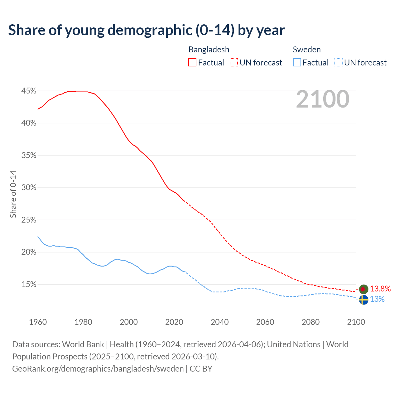 - The share of young demographic (0-15 years old) in Bangladesh is 28% vs 17% in Sweden.