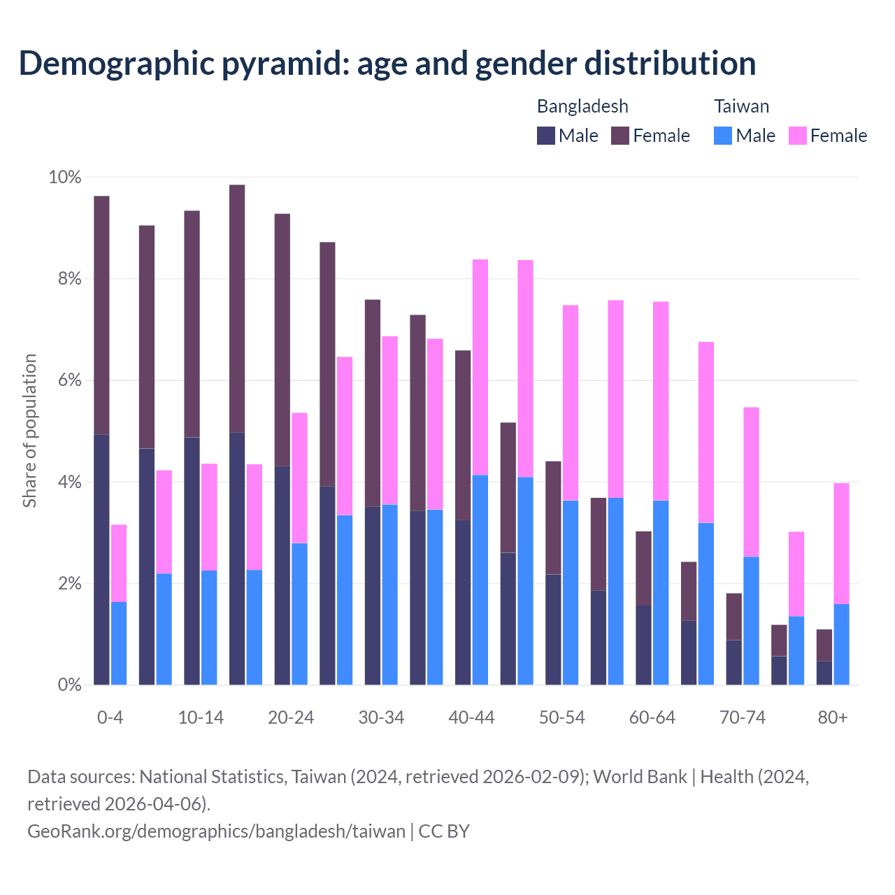 Demographics of Bangladesh compared to Taiwan: