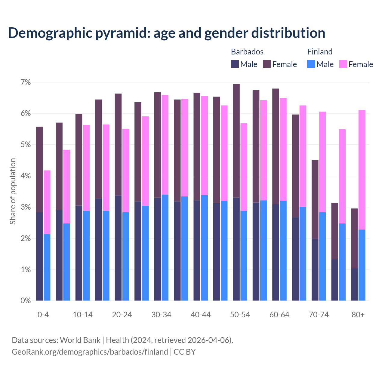 Demographics of Barbados compared to Finland: