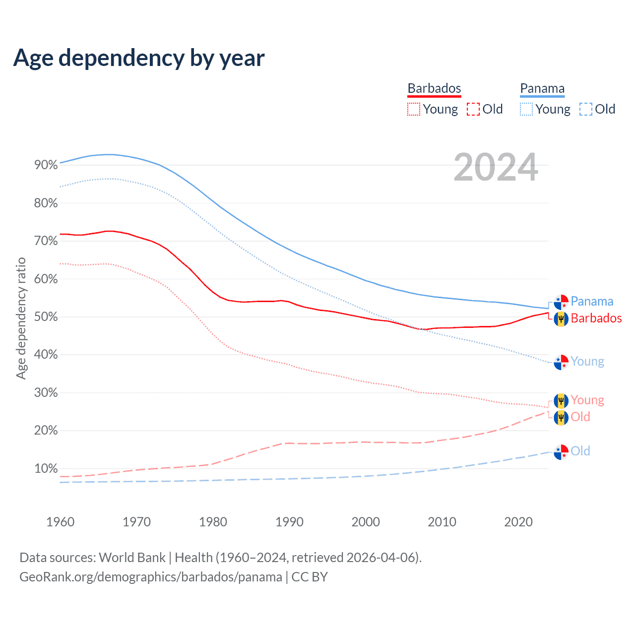 - Barbados is ranked 47/196 by median age (oldest to youngest) vs 94/196 for Panama.
