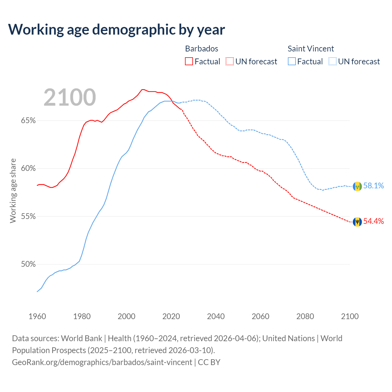 - Barbados has 187K working age adults (aged 15-64) vs 66.3K in Saint Vincent.