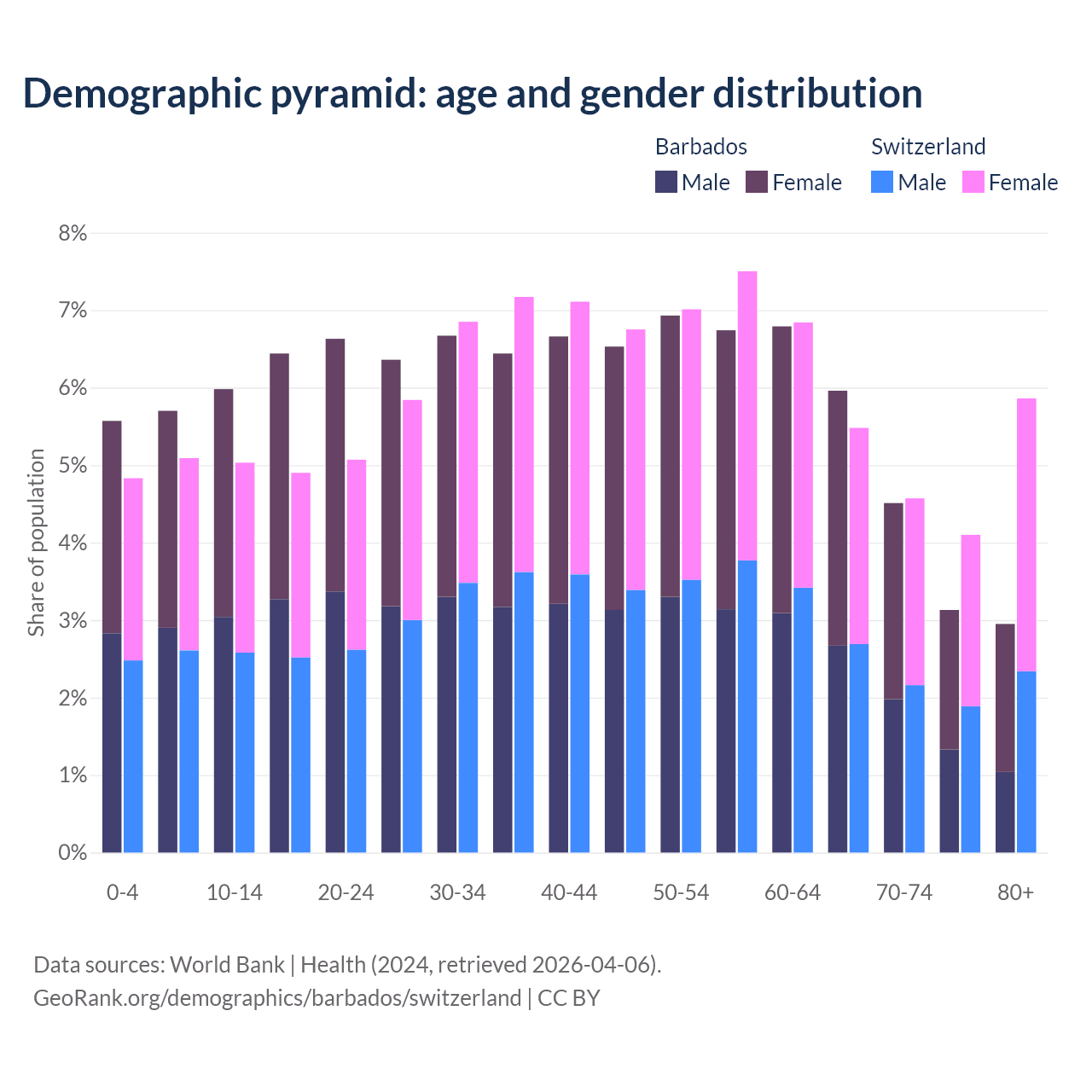 Demographics of Barbados compared to Switzerland:
