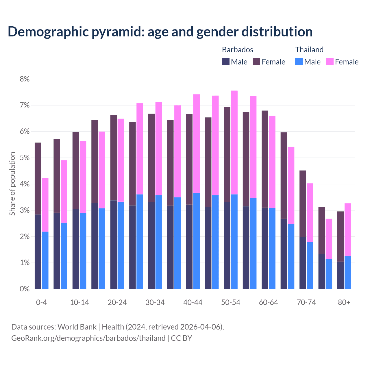 Demographics of Barbados compared to Thailand: