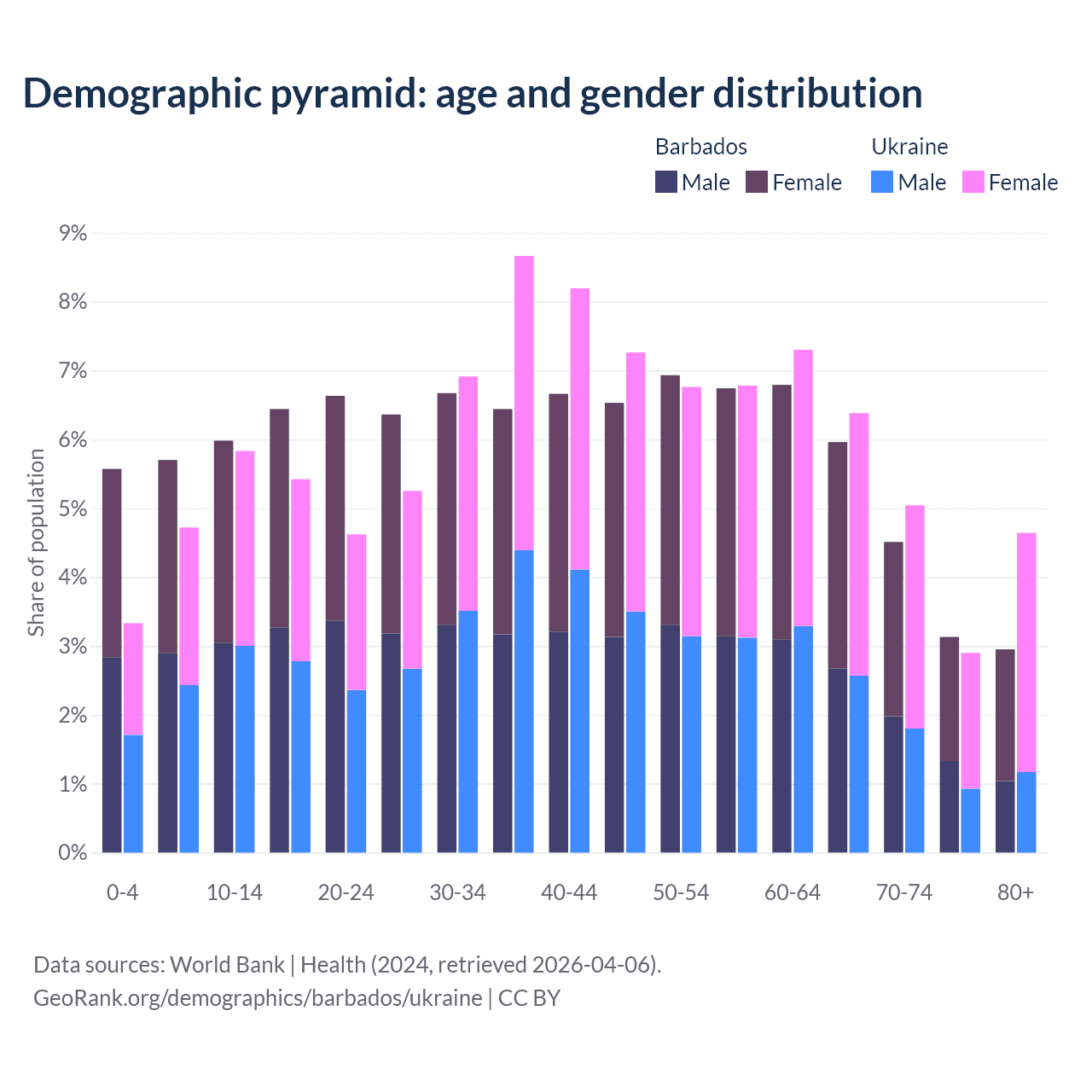 Demographics of Barbados compared to Ukraine: