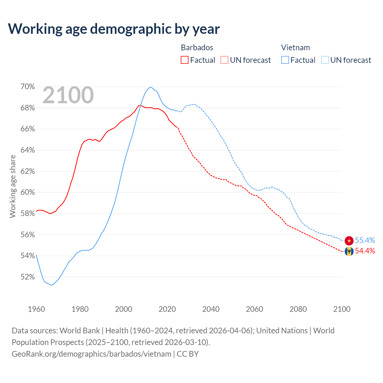 - Barbados has 187K working age adults (aged 15-64) vs 69.3M in Vietnam.