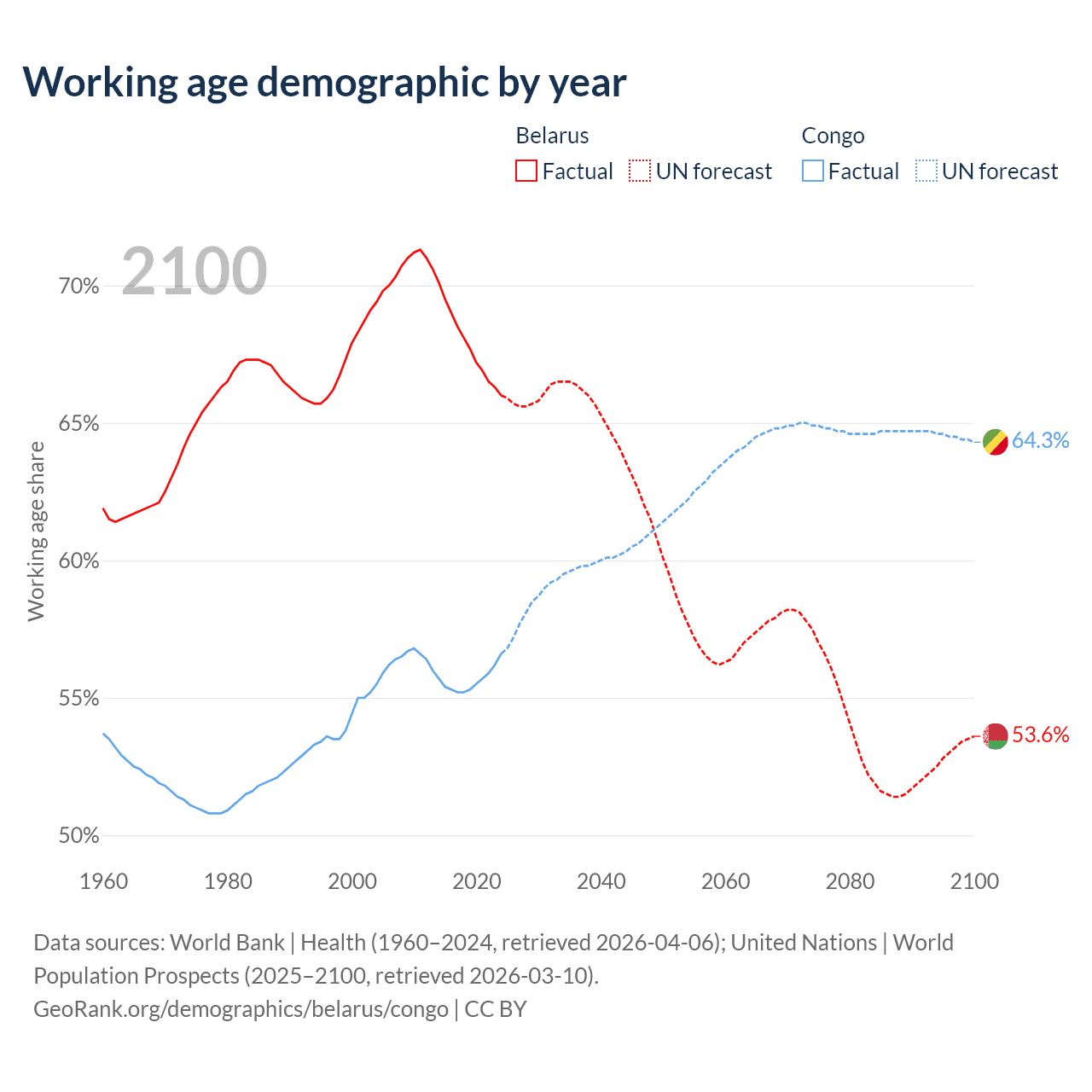 - Belarus has 5.95M working age adults (aged 15-64) vs 3.78M in the Congo.