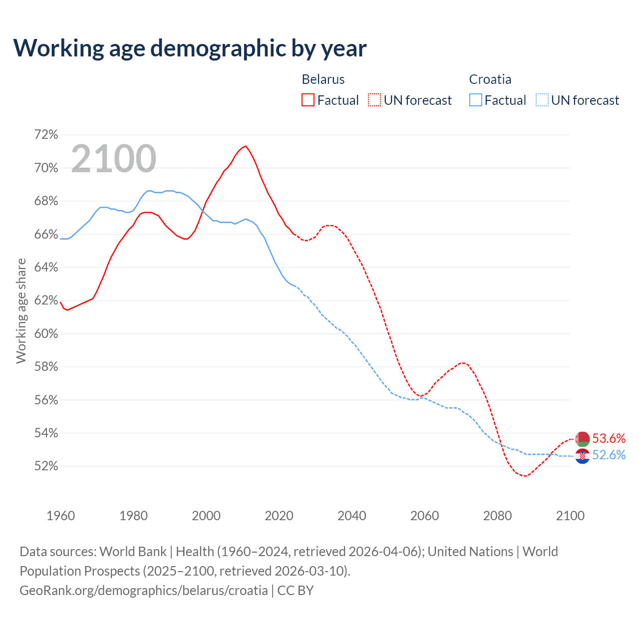 - Belarus has 5.95M working age adults (aged 15-64) vs 2.4M in Croatia.