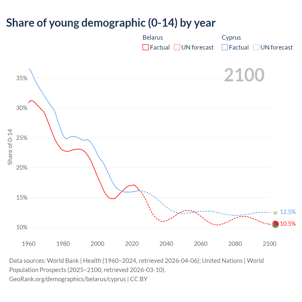 - The share of young demographic (0-15 years old) in Belarus is 16.3% vs 16.1% in Cyprus.