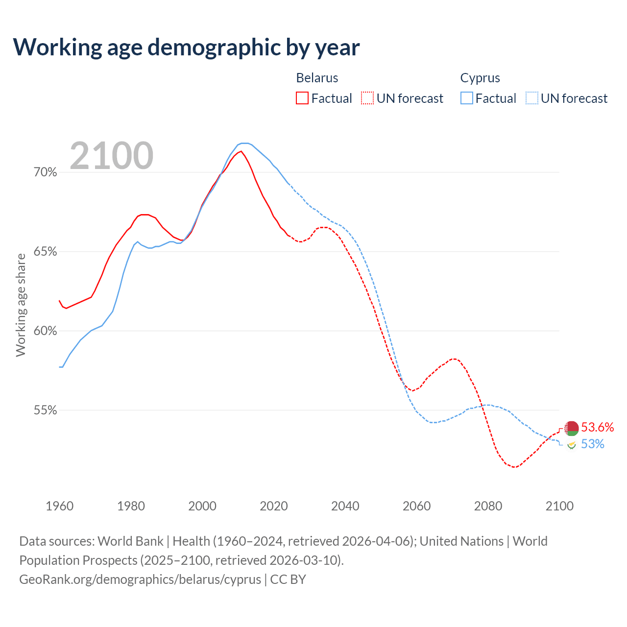 - Belarus has 5.95M working age adults (aged 15-64) vs 961K in Cyprus.