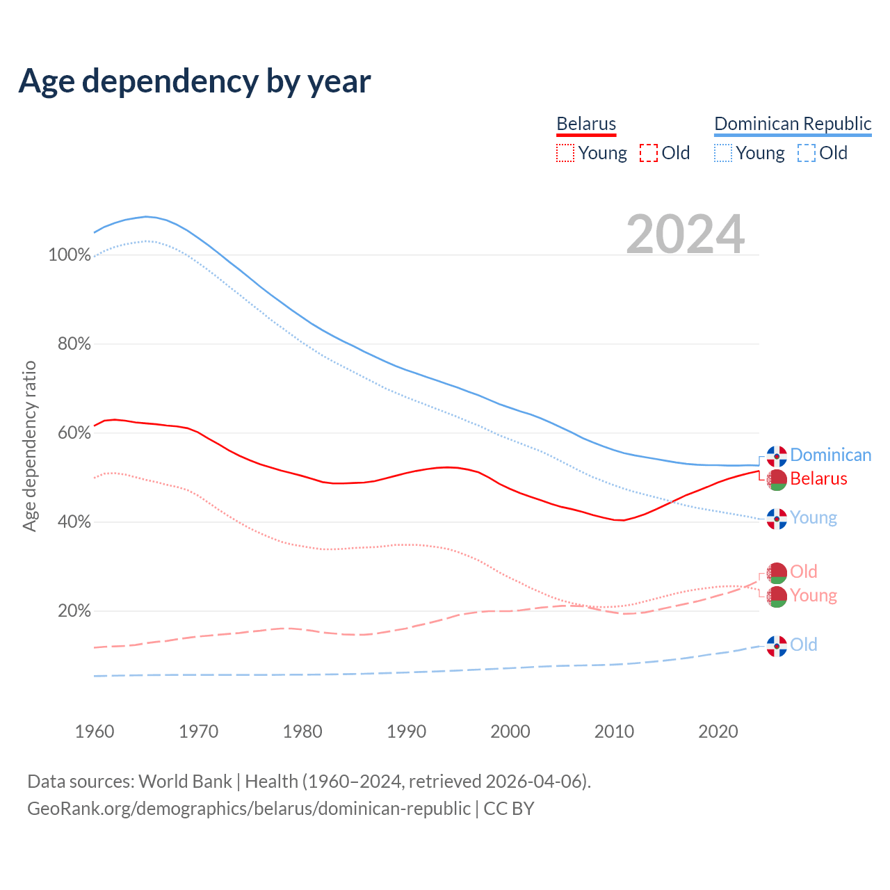 - Belarus is ranked 35/196 by median age (oldest to youngest) vs 112/196 for the Dominican Republic.