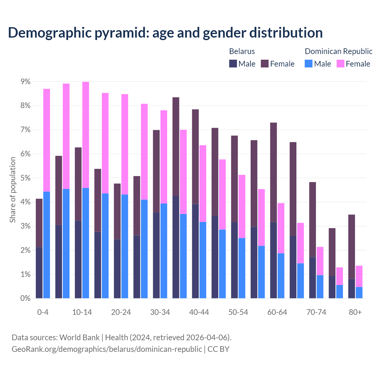 Demographics of Belarus compared to the Dominican Republic: