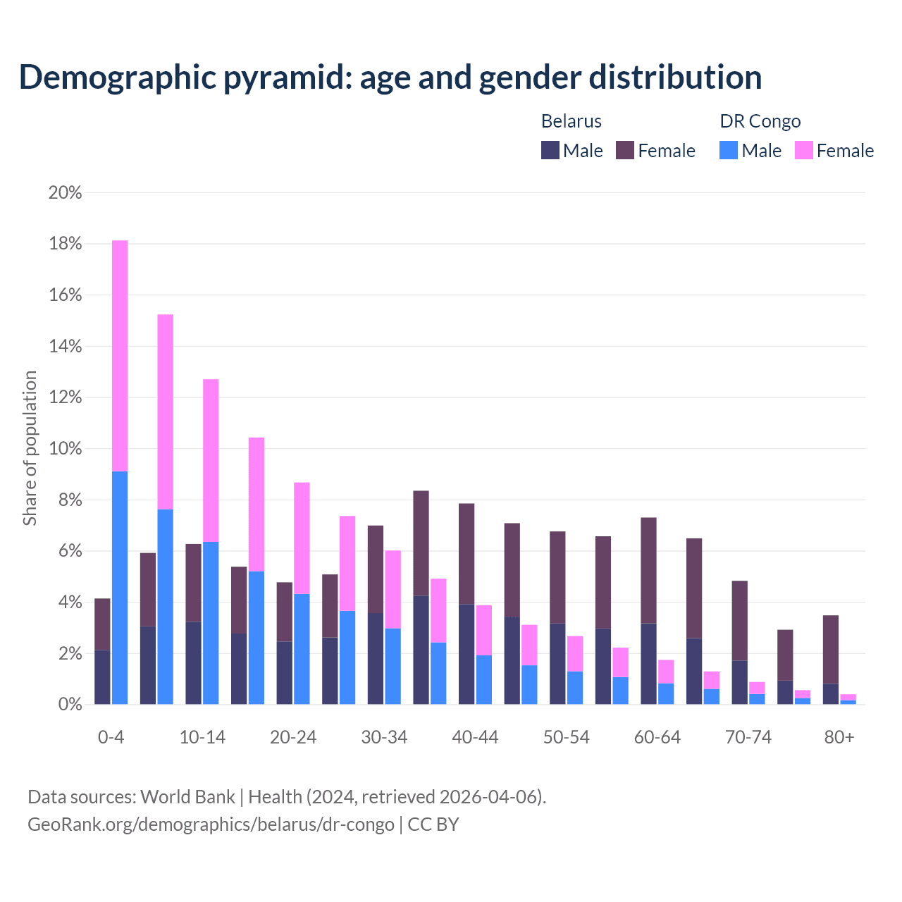 Demographics of Belarus compared to the DR Congo:
