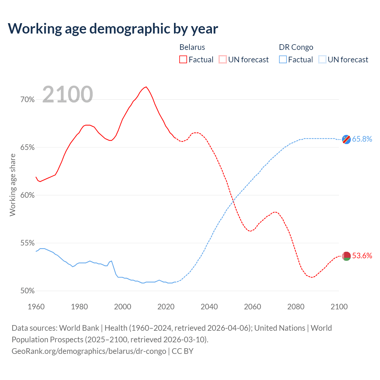- Belarus has 5.95M working age adults (aged 15-64) vs 59.8M in the DR Congo.