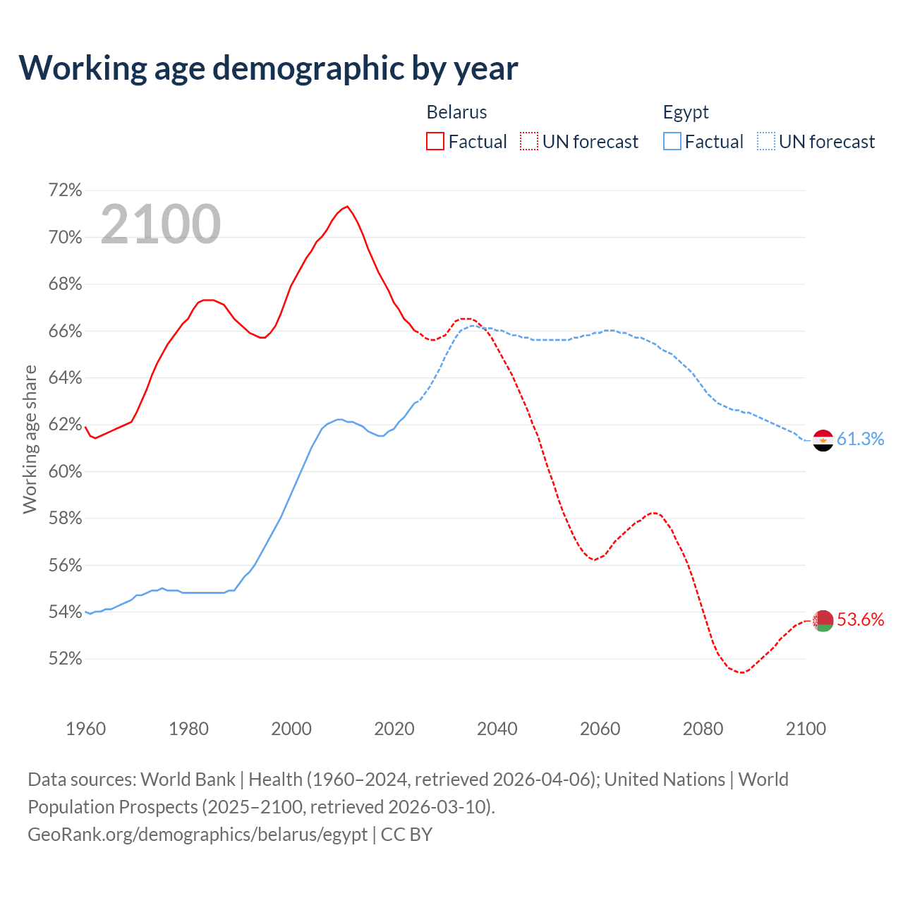 - Belarus has 5.95M working age adults (aged 15-64) vs 75.9M in Egypt.