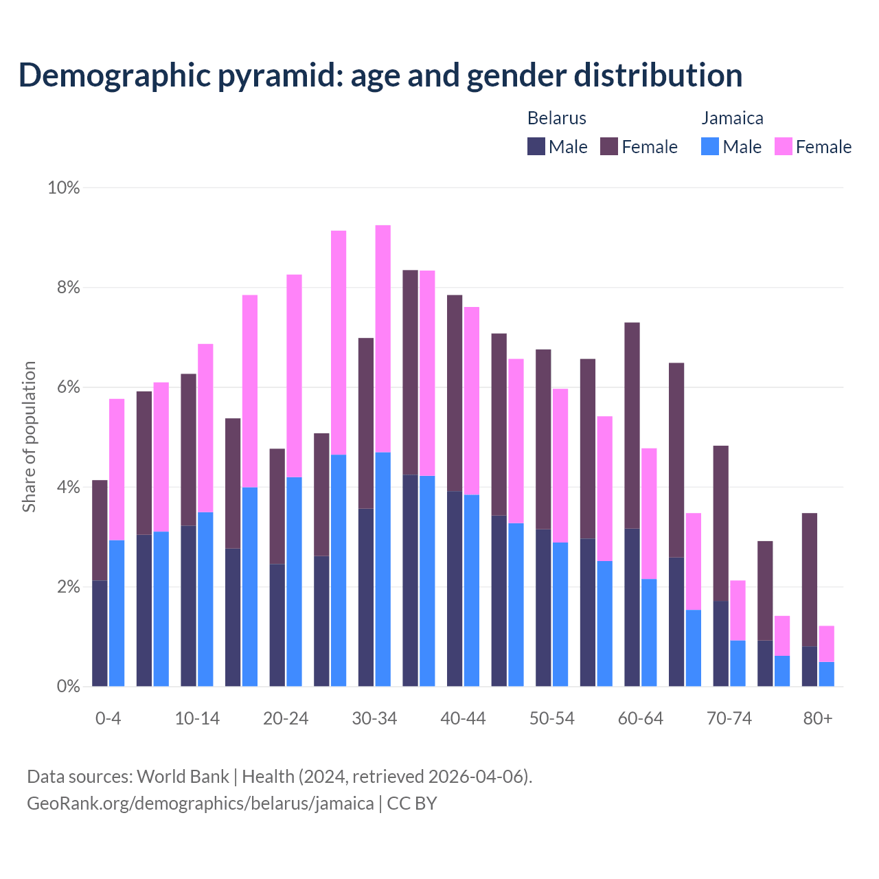 Demographics of Belarus compared to Jamaica: