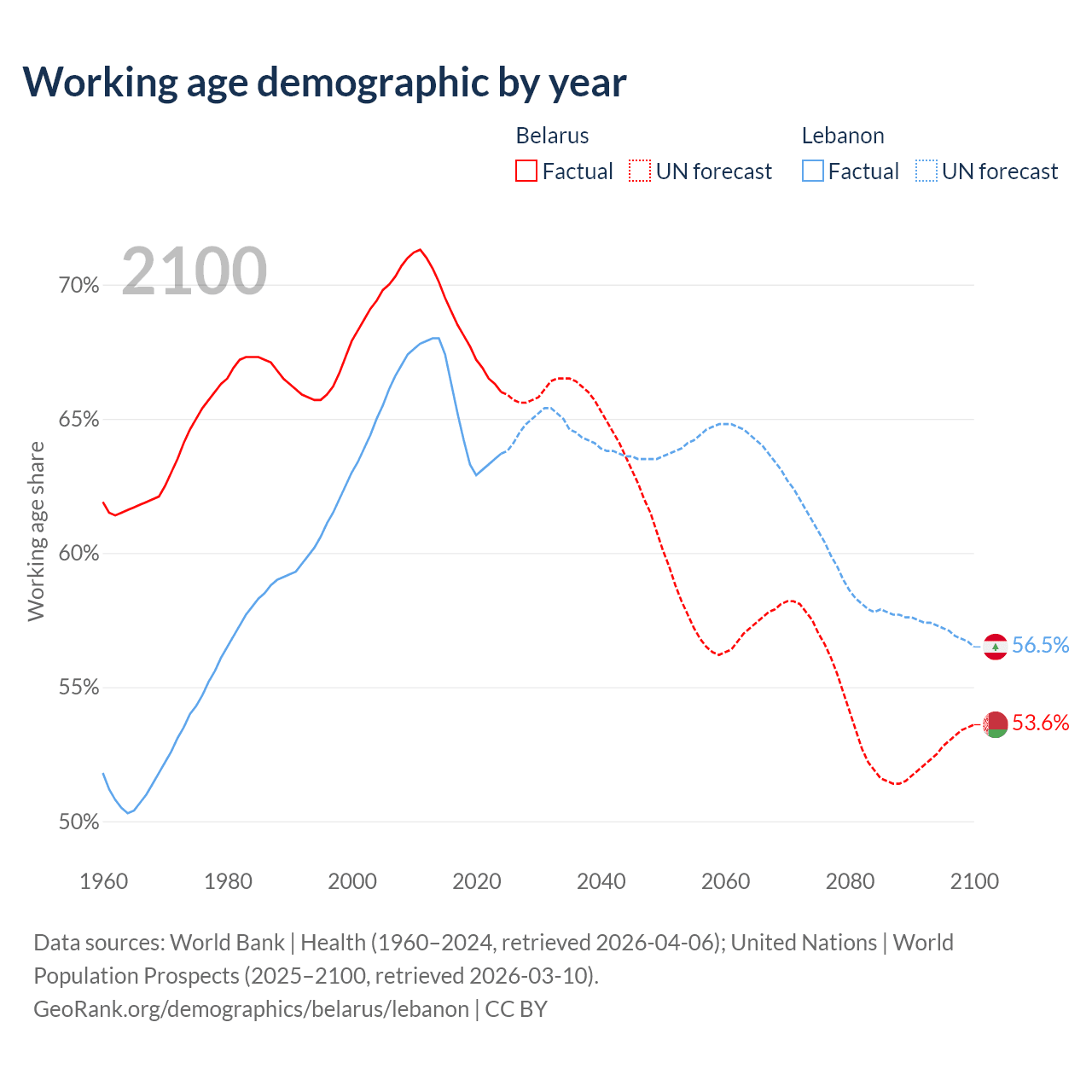 - Belarus has 5.95M working age adults (aged 15-64) vs 3.76M in Lebanon.