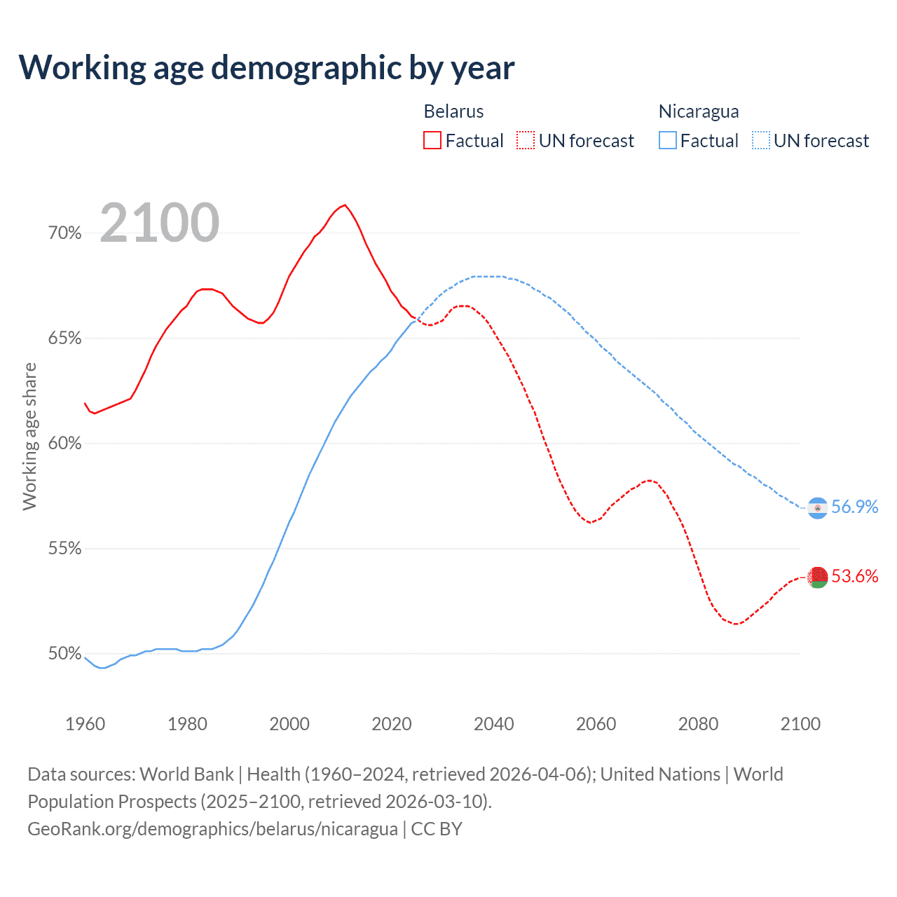 - Belarus has 5.95M working age adults (aged 15-64) vs 4.68M in Nicaragua.