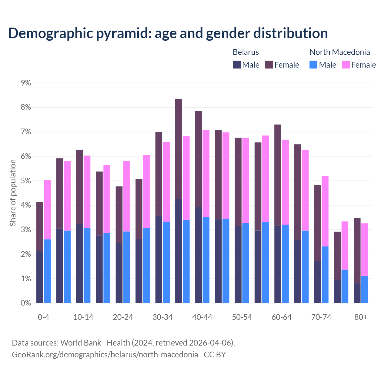Demographics of Belarus compared to North Macedonia: