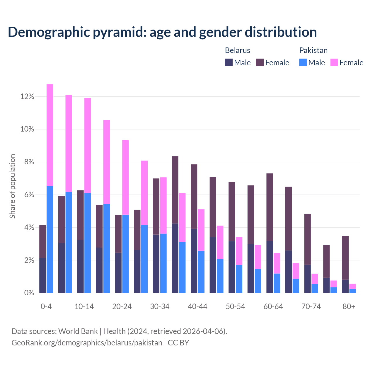 Demographics of Belarus compared to Pakistan: