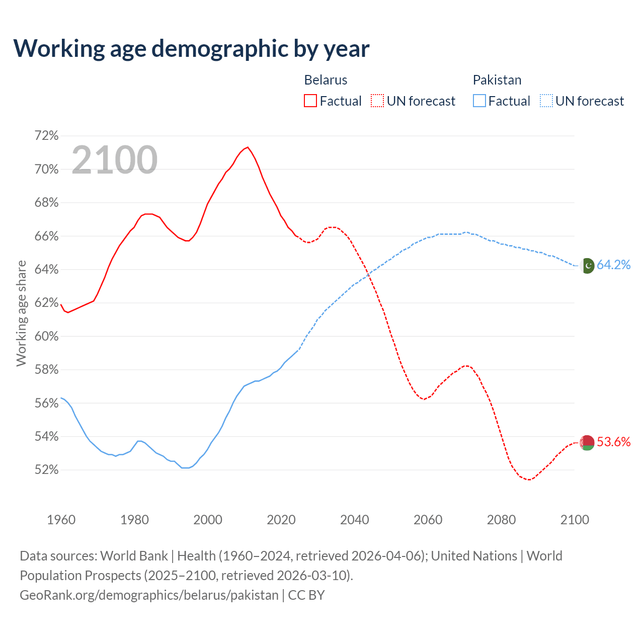 - Belarus has 5.95M working age adults (aged 15-64) vs 154M in Pakistan.