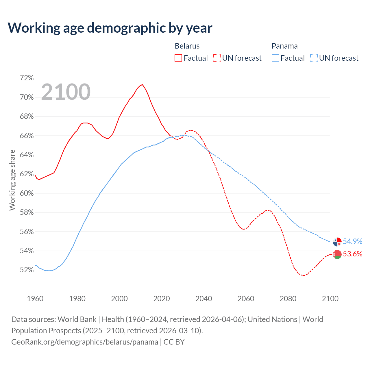 - Belarus has 5.95M working age adults (aged 15-64) vs 3.05M in Panama.