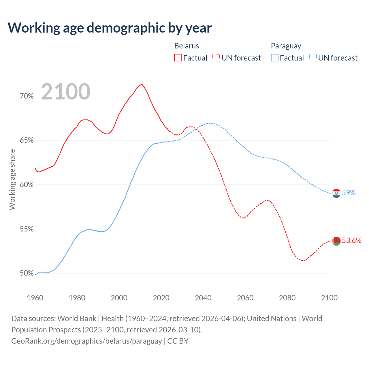 - Belarus has 5.95M working age adults (aged 15-64) vs 4.62M in Paraguay.