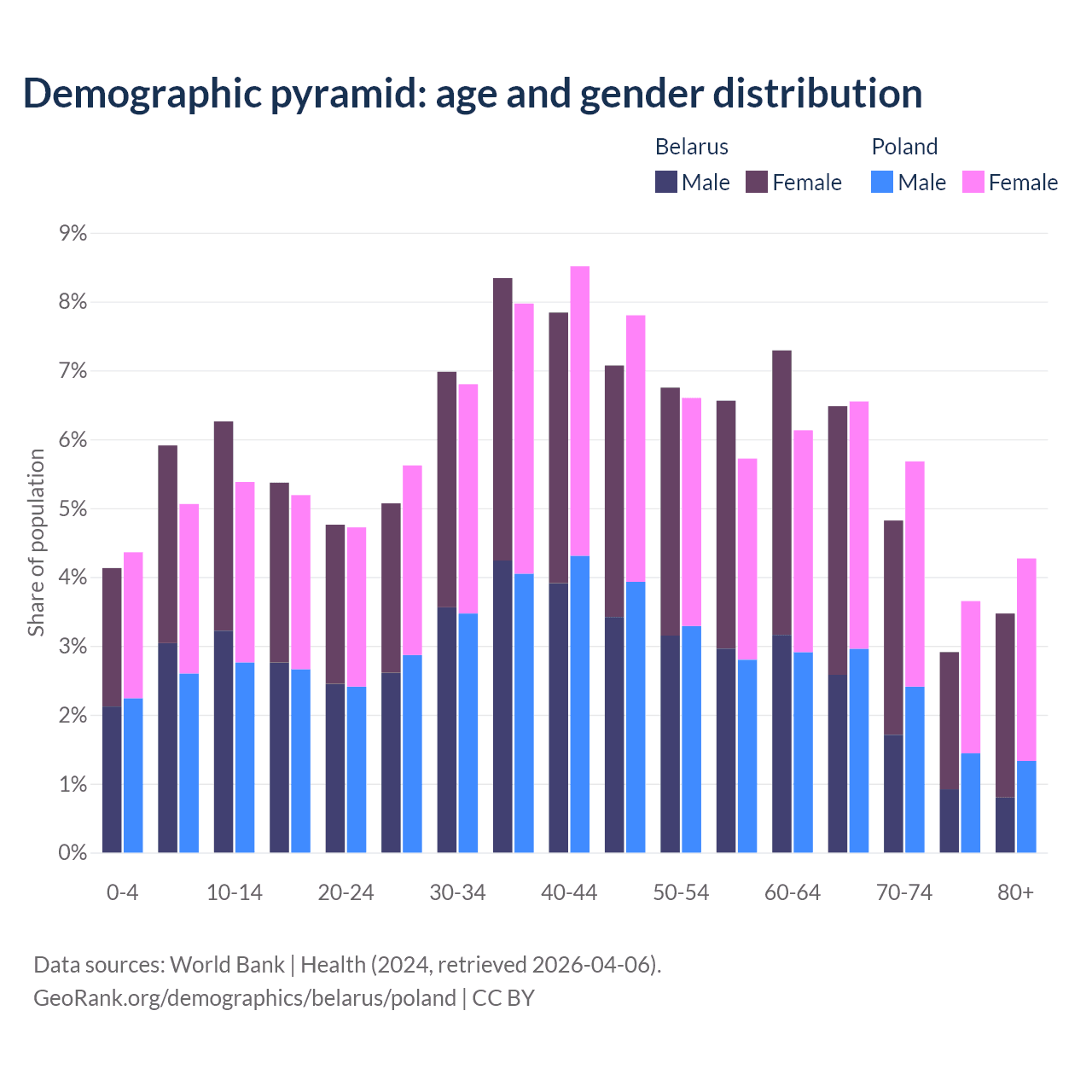 Demographics of Belarus compared to Poland: