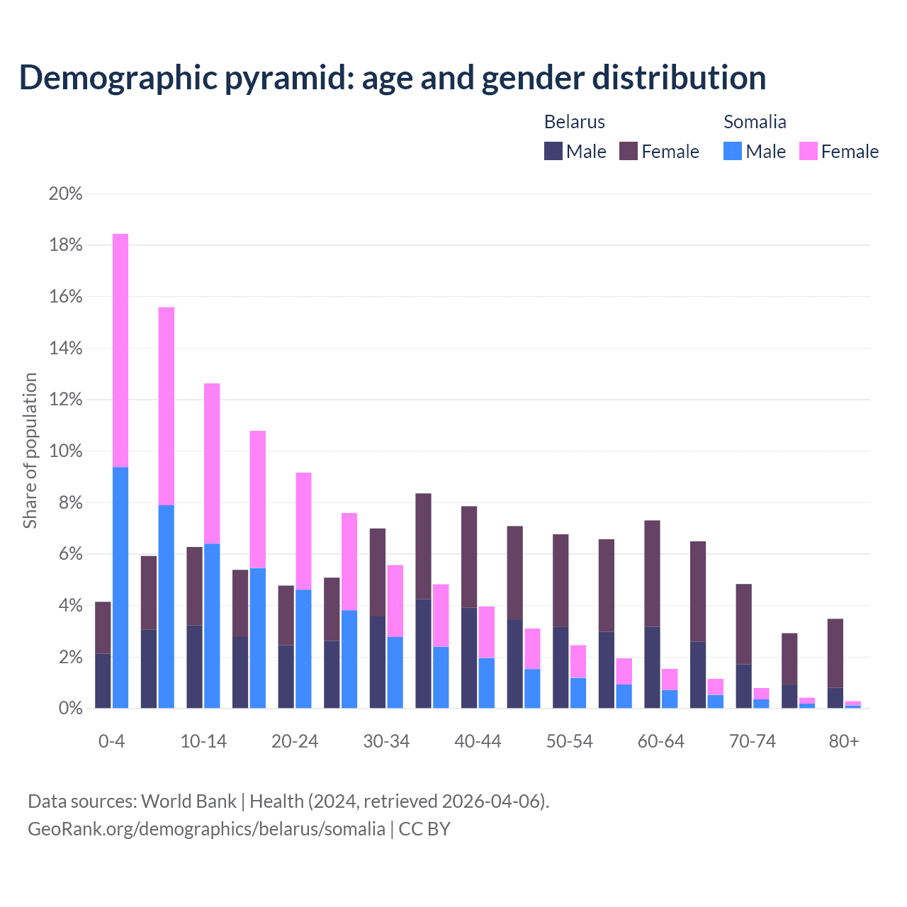 Demographics of Belarus compared to Somalia: