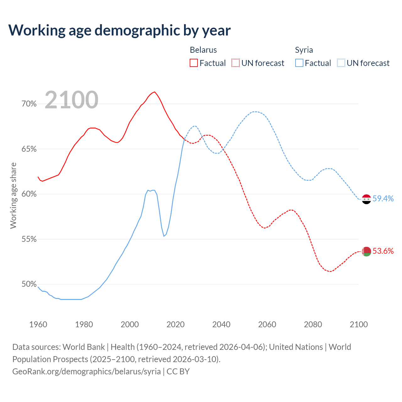 - Belarus has 5.95M working age adults (aged 15-64) vs 17.7M in Syria.