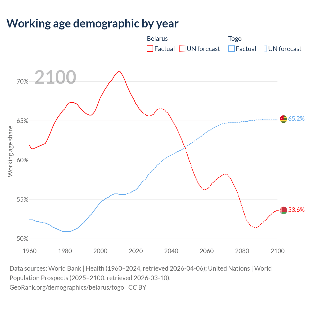 - Belarus has 5.95M working age adults (aged 15-64) vs 5.72M in Togo.