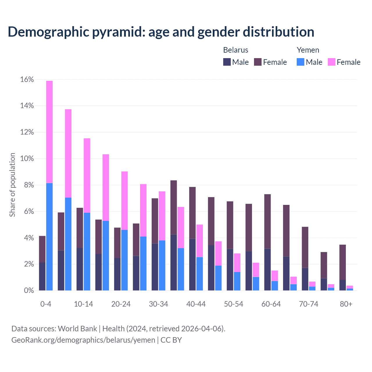 Demographics of Belarus compared to Yemen: