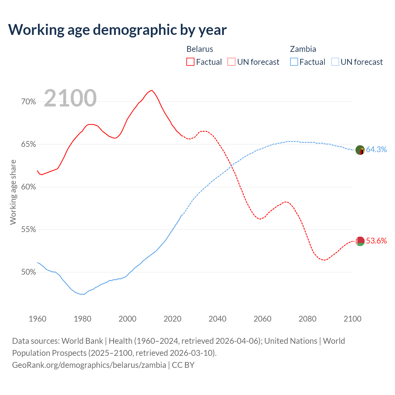 - Belarus has 5.95M working age adults (aged 15-64) vs 12.8M in Zambia.