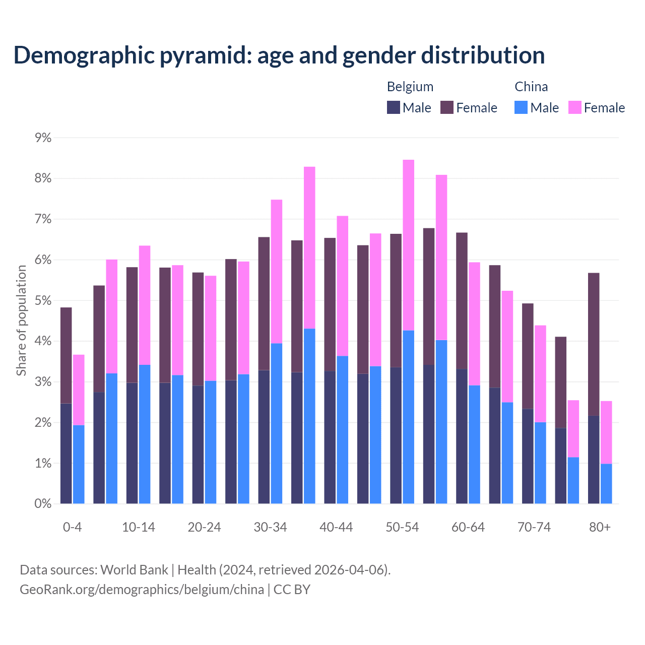 Demographics of Belgium compared to China: