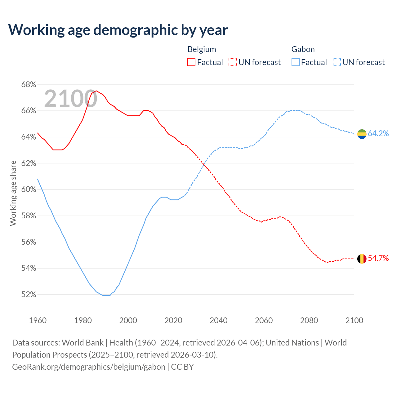 - Belgium has 7.55M working age adults (aged 15-64) vs 1.58M in Gabon.