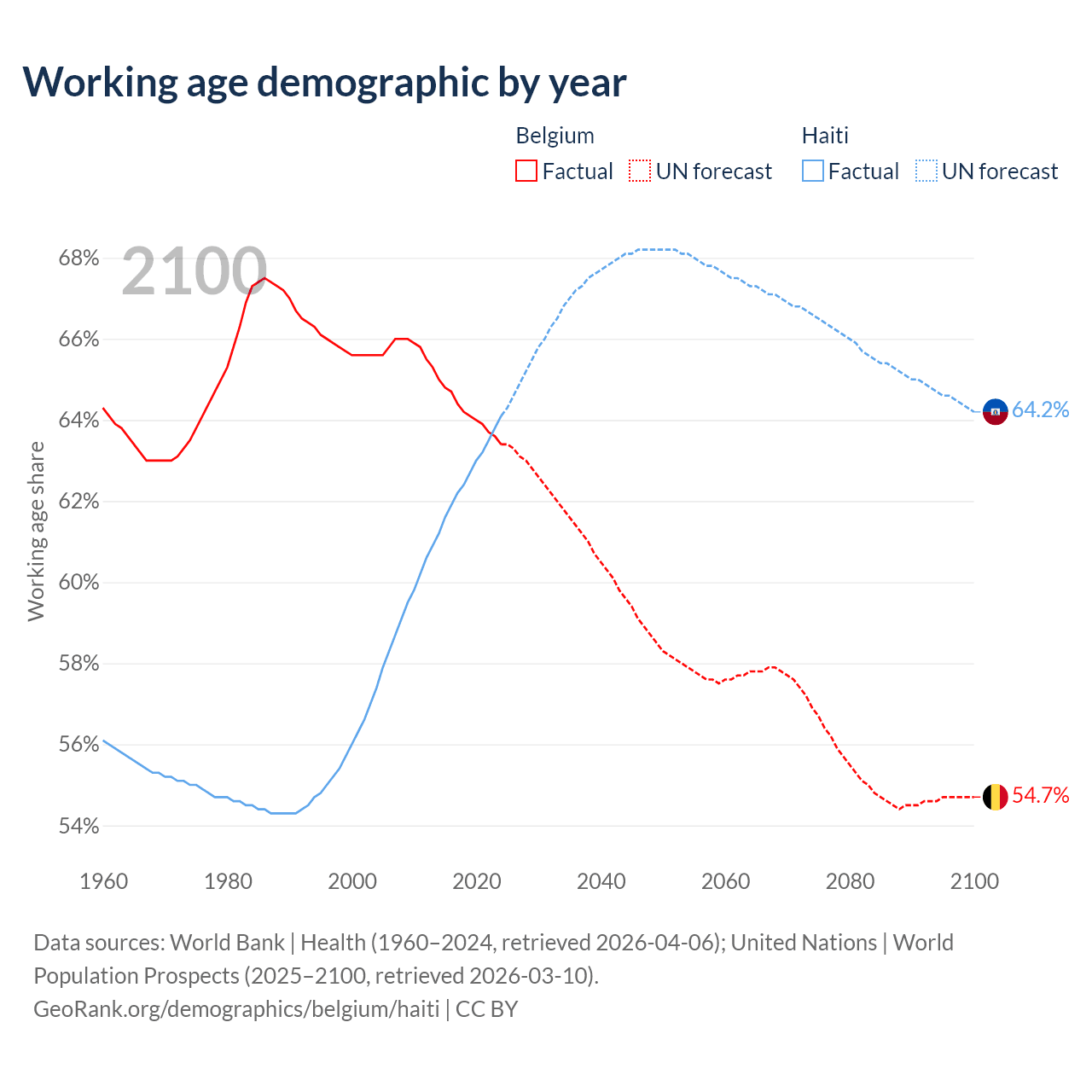 - Belgium has 7.55M working age adults (aged 15-64) vs 7.74M in Haiti.