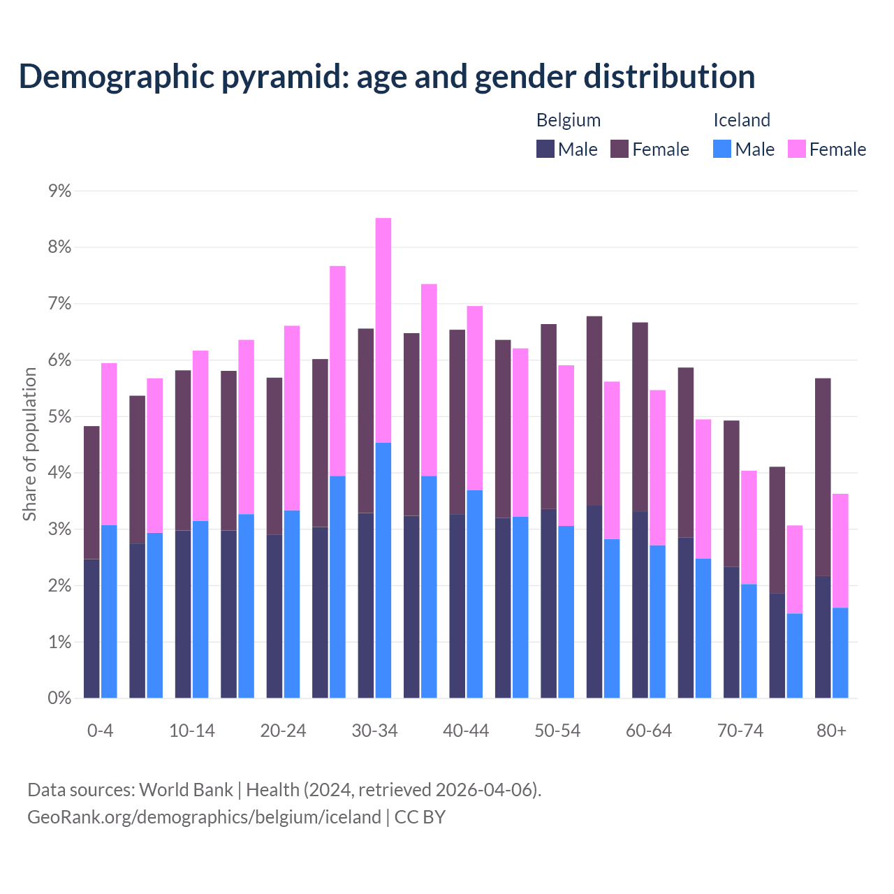 Demographics of Belgium compared to Iceland: