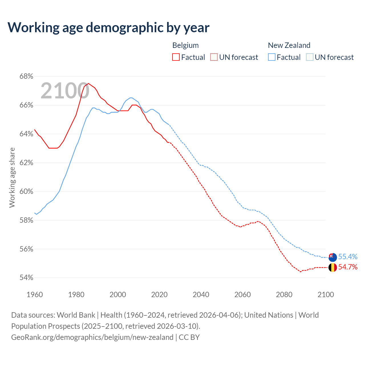 - Belgium has 7.55M working age adults (aged 15-64) vs 3.48M in New Zealand.