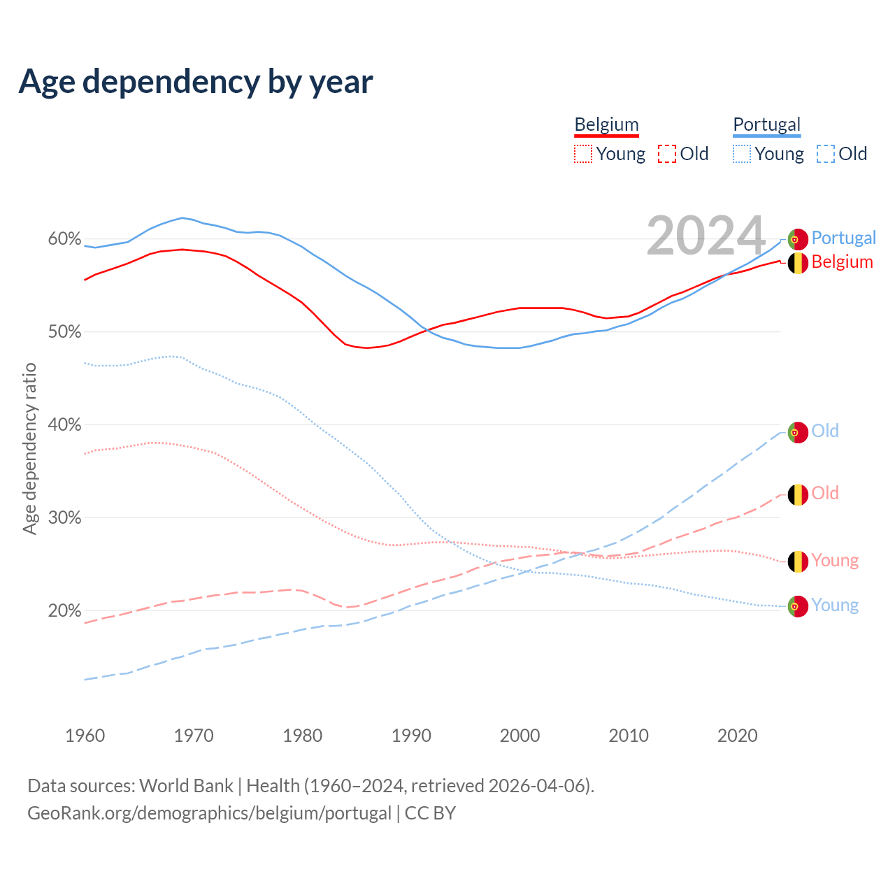 - Belgium is ranked 32/196 by median age (oldest to youngest) vs 5/196 for Portugal.