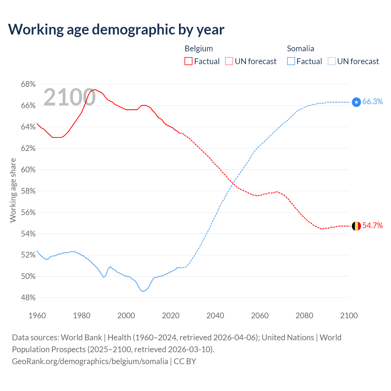 - Belgium has 7.55M working age adults (aged 15-64) vs 10.4M in Somalia.