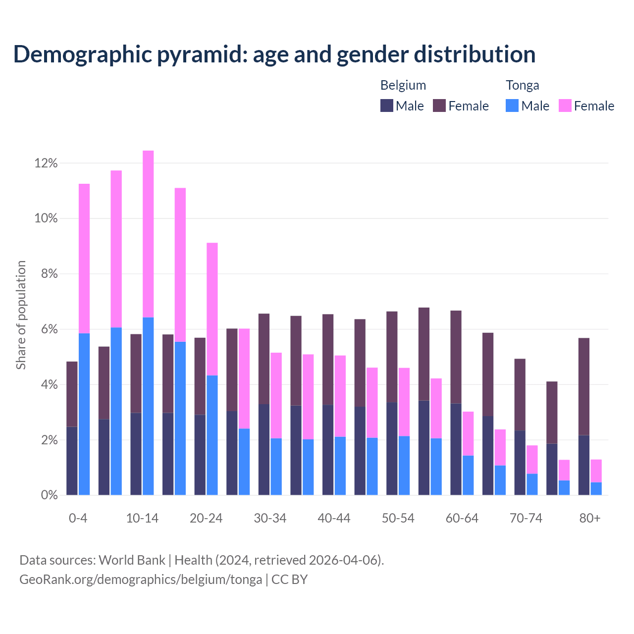 Demographics of Belgium compared to Tonga: