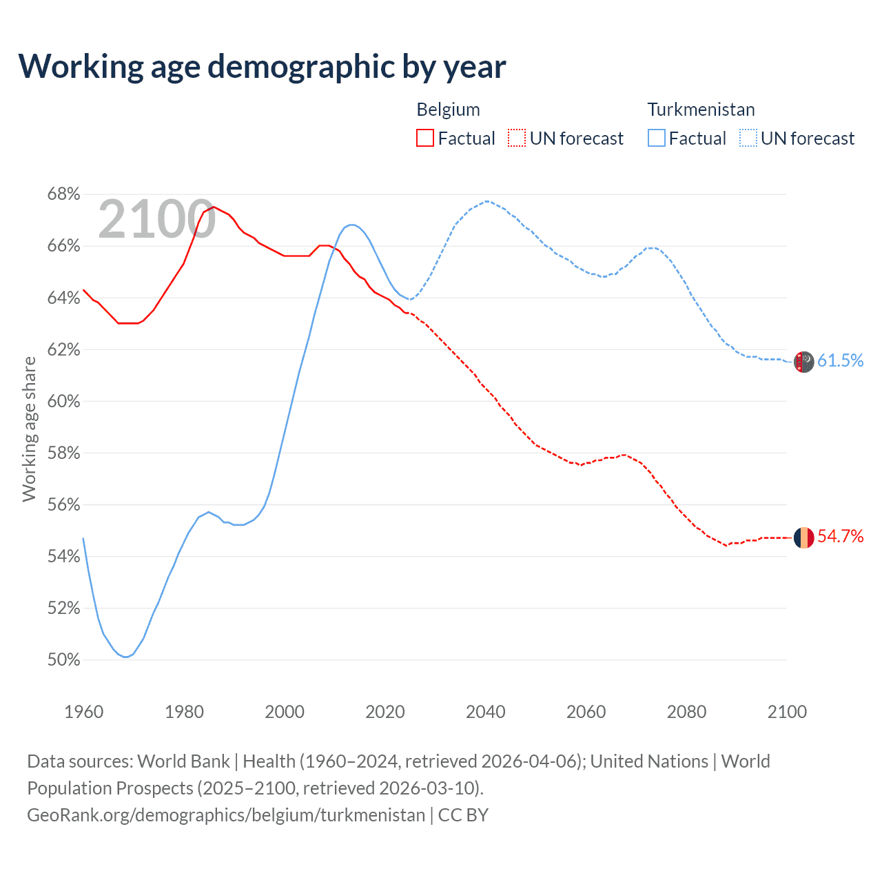 - Belgium has 7.55M working age adults (aged 15-64) vs 4.97M in Turkmenistan.
